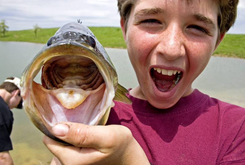 Audry Wiggins sporting a huge bass. Audry is a tour narrator at DCCI. | Some are large enough for a family meal. Marshall Dickinson thinks like a fish. |